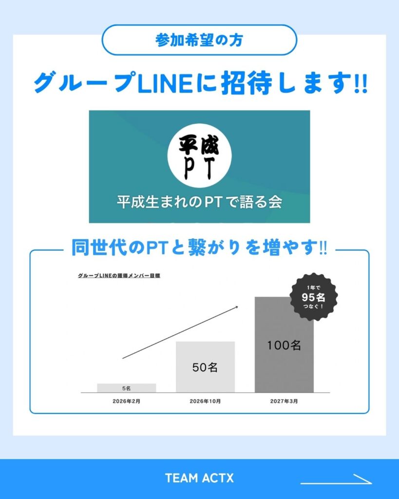 株式会社ACTXのPurposeは、「理学療法士の市場価値を高める」を1つ掲げています。このコミュニティを通じて、その実現とACTXを知ってもらうために、YouTubeやInstagramなどのSNSの活動にも強化していきます。